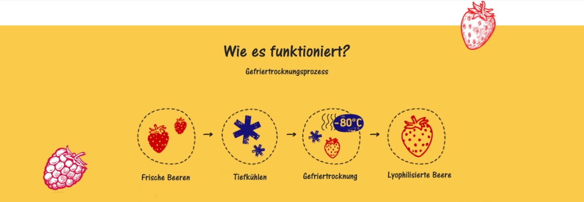 - Knusprig und leicht: Gefriergetrocknete Produkte erhalten eine angenehme Knusprigkeit und sind superleicht, sehr praktisch für unterwegs